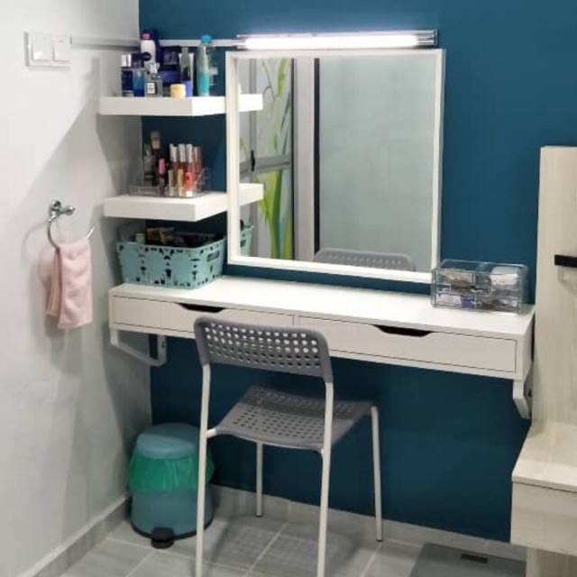 Meja Solek Diy Ikea - Home Desaign from media.karousell.com Simpan bayangan mata anda, berus solek dan kosmetik lain dalam beg buatan tangan yang boleh anda panggil sendiri! Idea rekaan meja solek kebanyakan kaum wanita sangat memerlukan ruang meja solek sebagai tempat untuk bersolek dan berdandan. Solek is a infinitely wise omnipotent being, who wishes to show all of his creations his ways. Murah dan cantik | shopee haul malaysia. Desk, table, in closet, table leg, end table, table vise, lamp table, office mate. See more ideas about bilik tidur, meja mekap, hiasan bilik. Mini meja solek ini dibuat bagi memudahkan penyusunan alat solek yang sediada supaya nampak lebih teratur dan kemas.mini meja solek ini mempunyai ruang untuk meletak alat solek,tempat meletakkan pin tudung ataupun jarum peniti. Almari 8x8 n meja solek n katil sets.