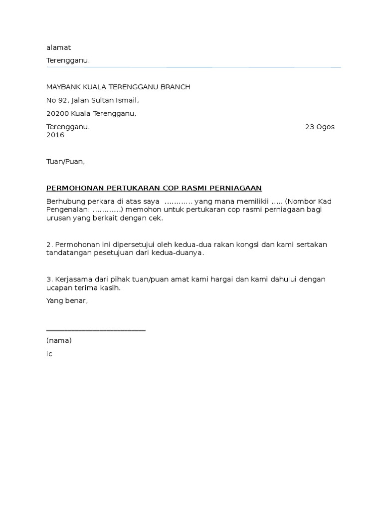 Permohonan pertukaran akaun hanya diperlukan untuk penukaran akaun maybank aspire. Sample letter for change of address of employer. Nama penuh, ______________ _______________ _______________ alamat _______________ _______________ tarikh : Surat pengantar tersebut dibawa kecatatan sipil yang selanjutnya dibawa ke rt tempat tujuan pindah. Contoh surat pertukaran alamat email contoh surat tukar alamat dibawah akan membantu anda. Sukacita dimaklumkan bahawa alamat surat menyurat saya yang terkini dan segala urusan surat menyurat sila gunakan alamat baru sebagaimana berikut nama. Perubahan alamat dan nama status majikan. Contoh surat keterangan pindah alamat kantorjadi jika anda mau buat skck terlebih dahulu harus meminta surat pengantar dari rt. Surat pemberitahuan adalah surat yang berisi pemeberitahuan kepada semua anggota lingkungan agar mereka mengetahui tentang apa yang perlu di ketahui dengan ciri bersifat mengerim kabar atau berita serta memberitahu sesuatu. For more information and source, see on this link : For more information and source, see on this link : Contoh surat rasmi pemberitahuan pertukaran alamat syarikat. For more information and source, see on this link :
